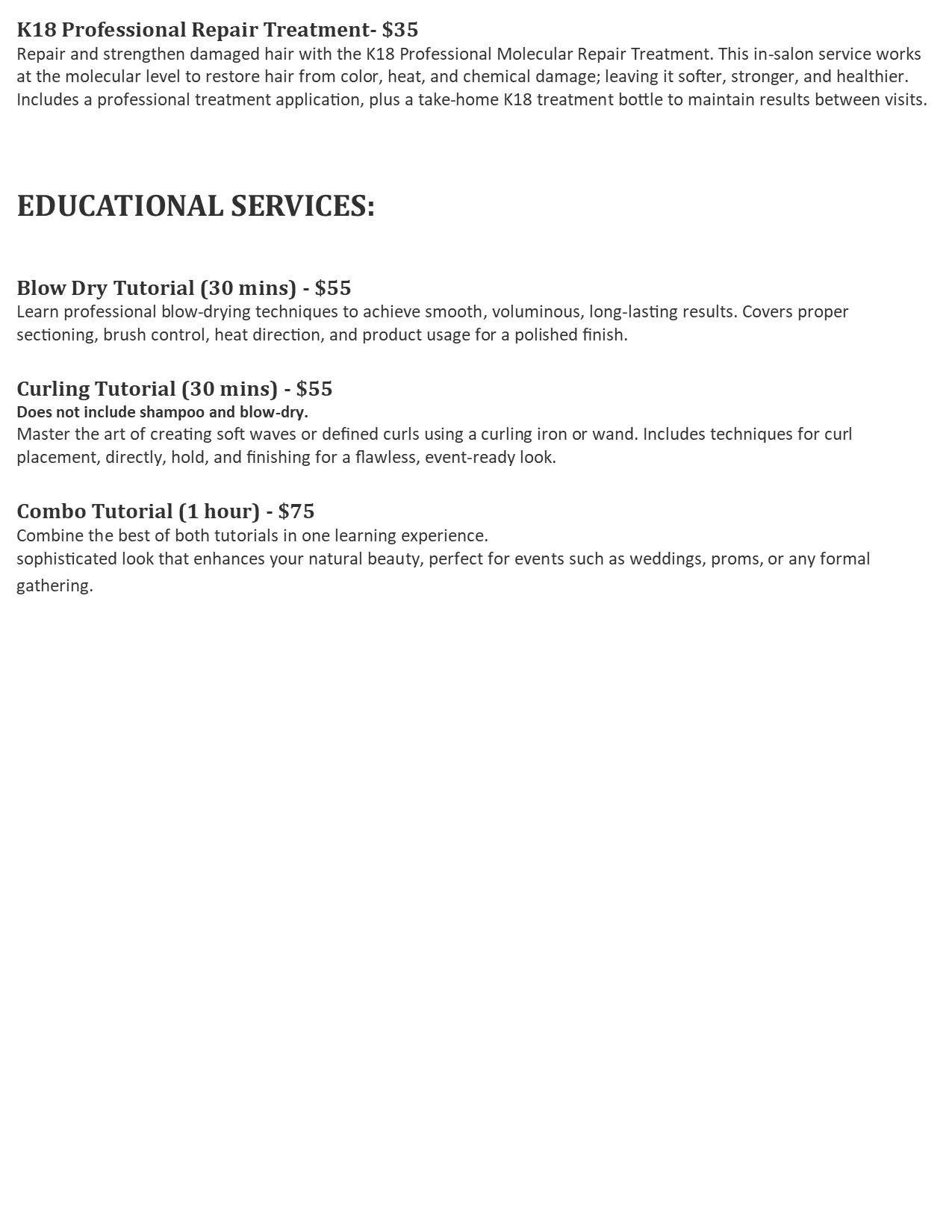HAIR SERVICES